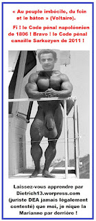 L’éminente doctrine universitaire vous enseigne que toutes les lois pénales protégeant les individus contre l’oppression criminelle des nos régimes (des gangsters) « sont une branche morte de notre droit pénal ». Mes constructions juridiques à ce sujet sur le blog sont irréalistes et irréalisables bien que juridiquement irréfutés et absolument irréfutables comme le démontre leurs occultations criminelles par les juges prévaricateurs.